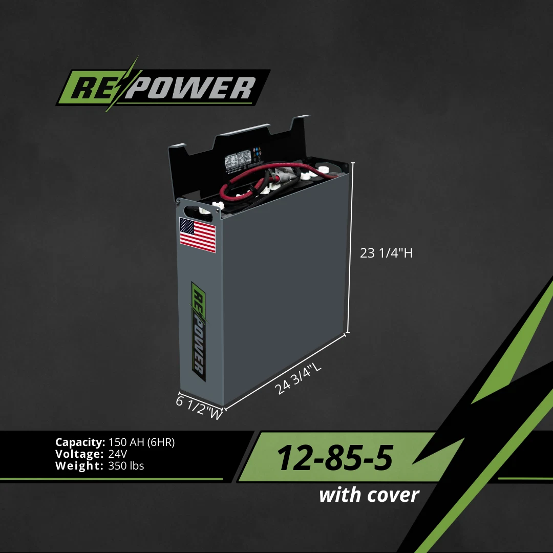 Repower Reconditioned 12-85-5 Forklift Battery 24V 24.75"L x 6.5"W x 23.25"H WC